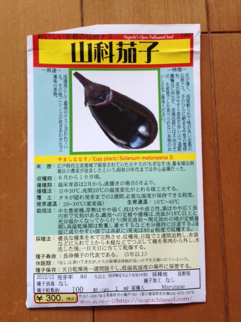 昨日(3月12日)、この間、野口種苗さんで買った「山科茄子」の種をまきました。