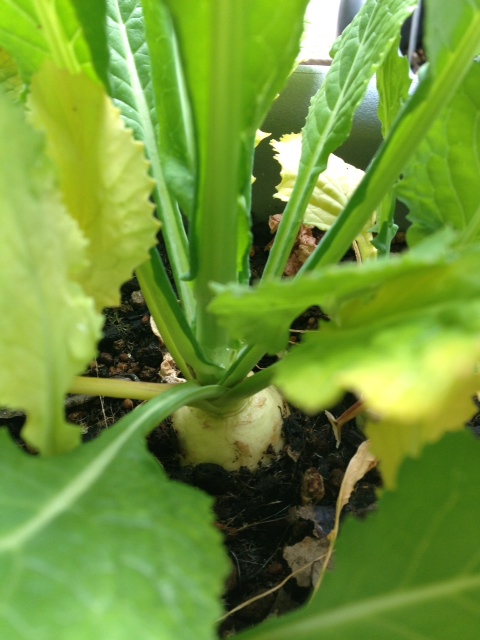 小さいので収穫せずに頑張っている「みやまこかぶ」