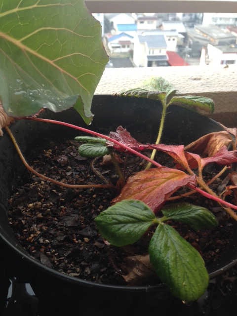 ベランダのイチゴの様子です。